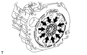 Install and uniformly tighten the 10 bolts in several steps in the sequence shown in the illustration.