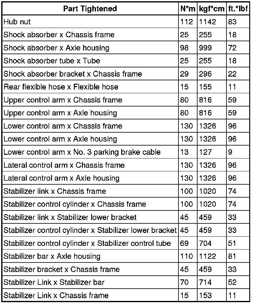 : TORQUE SPECIFICATIONS