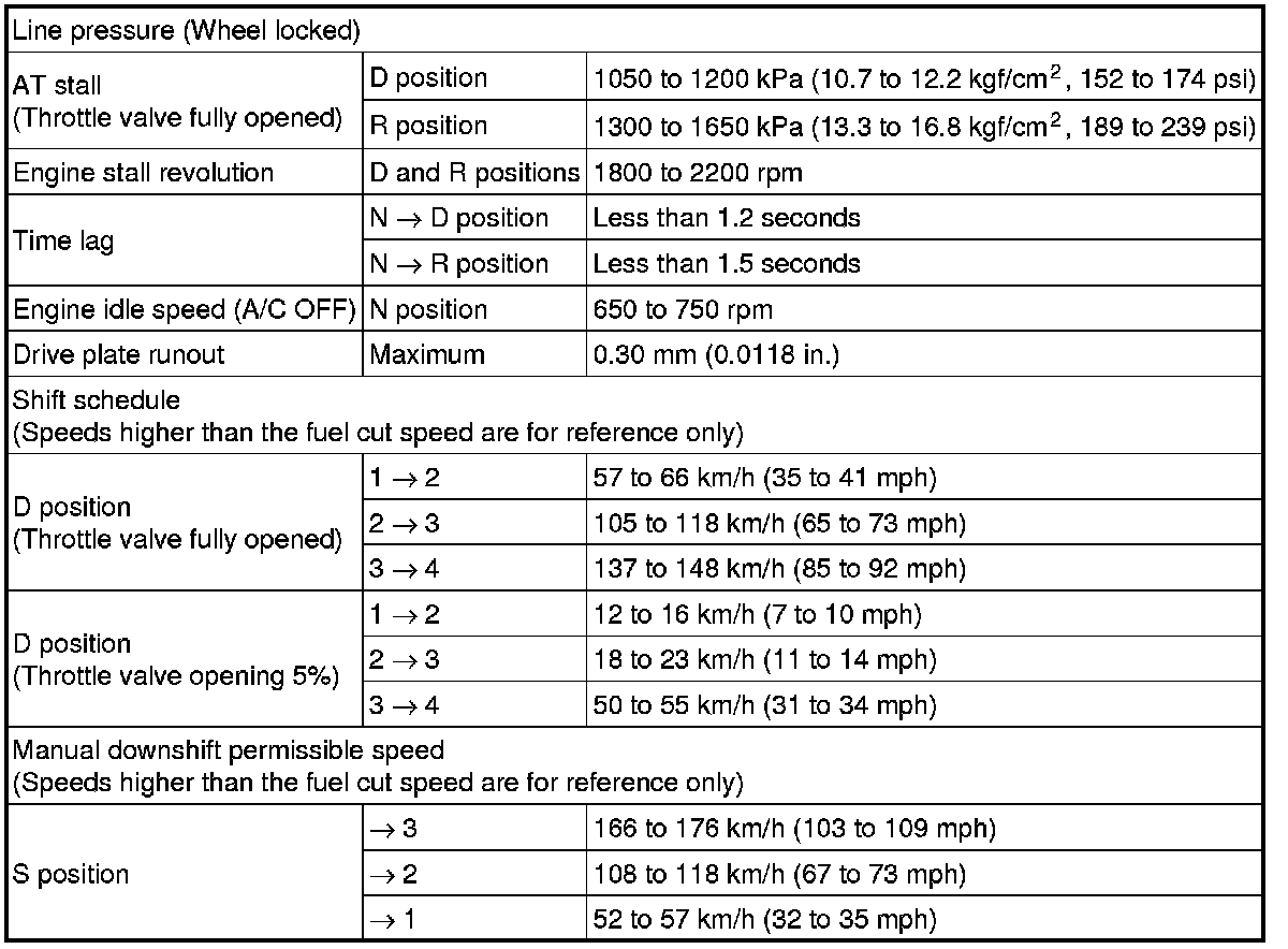 SPECIFICATIONS: A343E AUTOMATIC TRANSMISSION / TRANSAXLE: SERVICE DATA