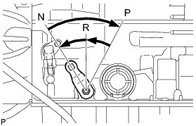 (d) Turn the control shaft lever LH clockwise until it stops, and then turn it counterclockwise 2 notches to set it to the N position.