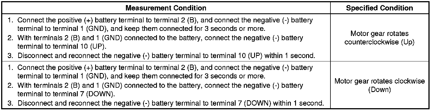 WINDOW / GLASS: POWER WINDOW REGULATOR MOTOR (for Front Door): INSPECTION