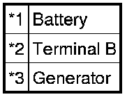 (1) Disconnect the wire from terminal B of the generator, and then connect it to the negative (-) lead of an ammeter.
