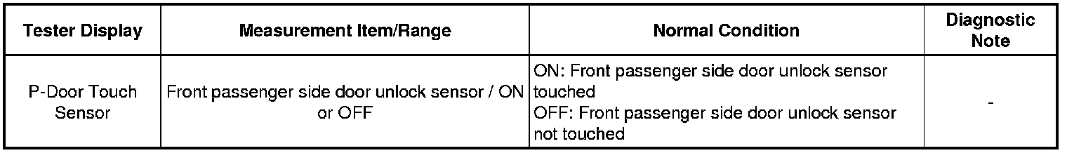 THEFT DETERRENT / KEYLESS ENTRY: SMART KEY SYSTEM (for Entry Function): Front Passenger Side Door Entry Unlock Function does not Operate