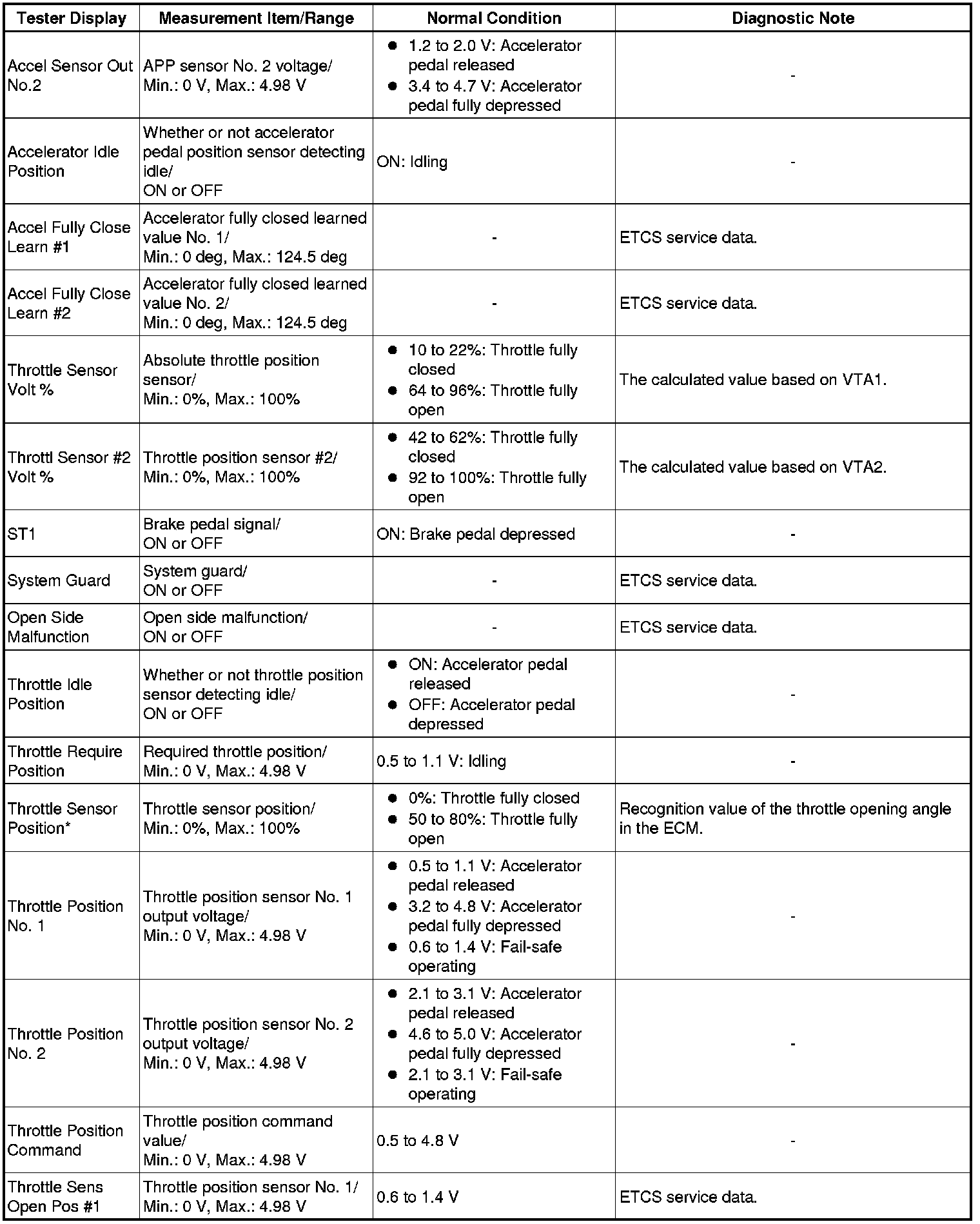 *: This excludes the throttle valve opening percentage due to Idle Speed Control (ISC).