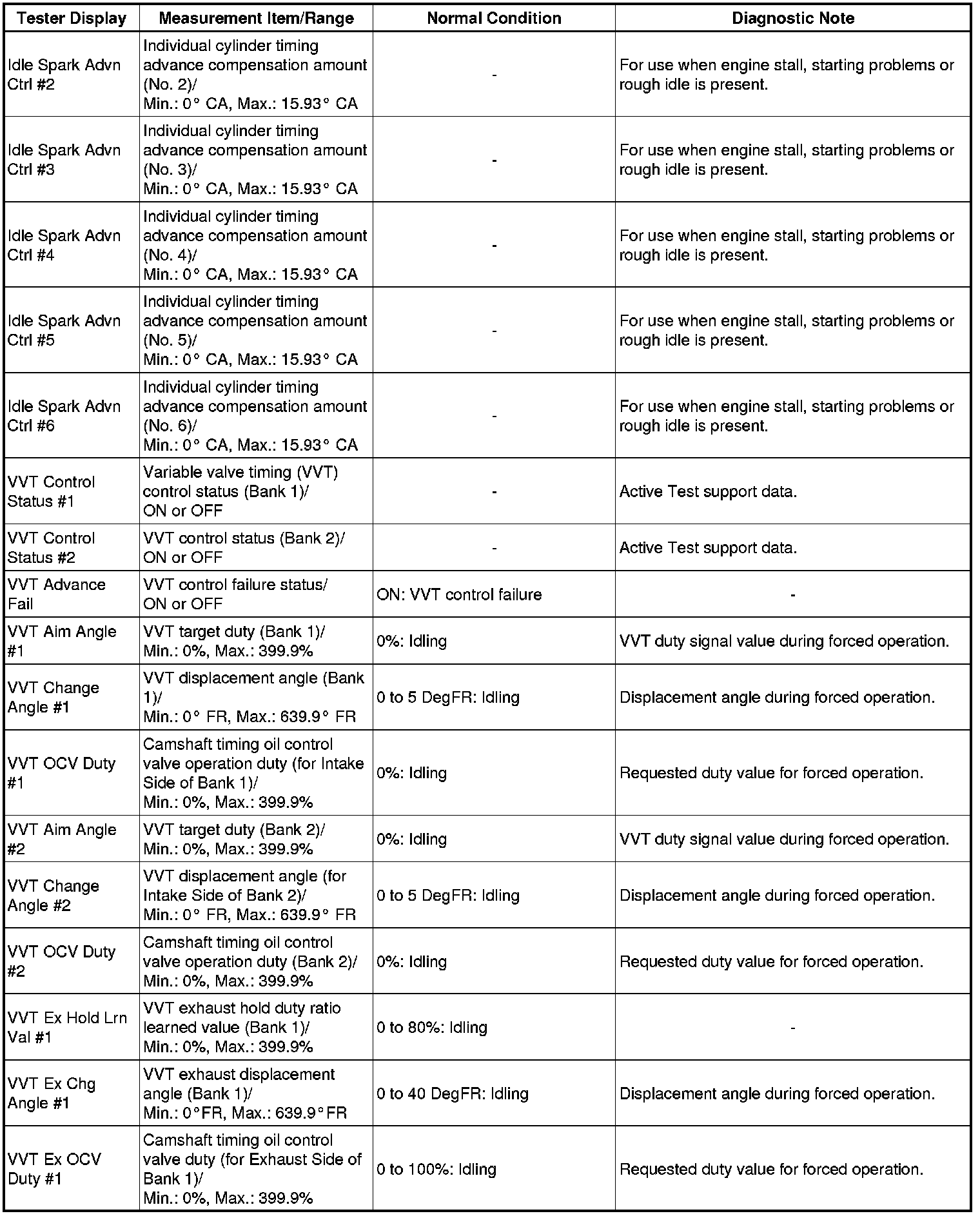 Using the Techstream to read the Data List allows the values or states of switches, sensors, actuators and other items to be read without removing any parts. This non-intrusive inspection can be very useful because intermittent conditions or signals may be discovered before parts or wiring is disturbed. Reading the Data List information early in troubleshooting is one way to save diagnostic time.