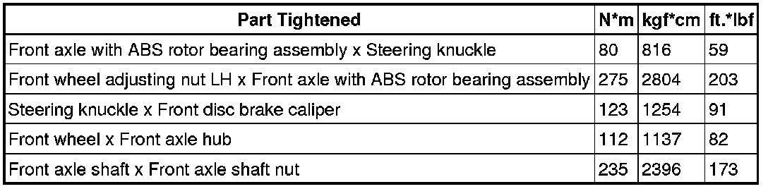 SPECIFICATIONS: AXLE AND DIFFERENTIAL: TORQUE SPECIFICATIONS