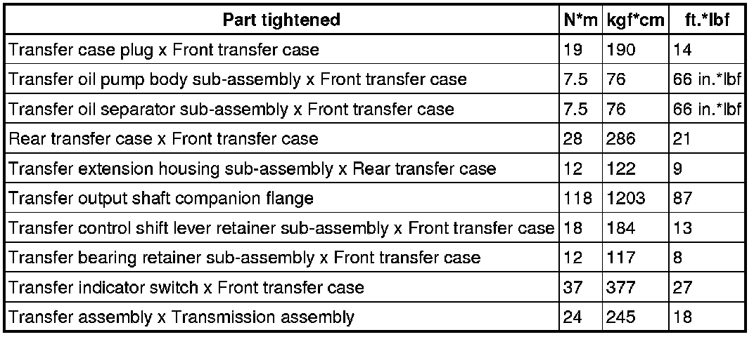 SPECIFICATIONS: VF2A TRANSFER / 4WD / AWD: TORQUE SPECIFICATIONS