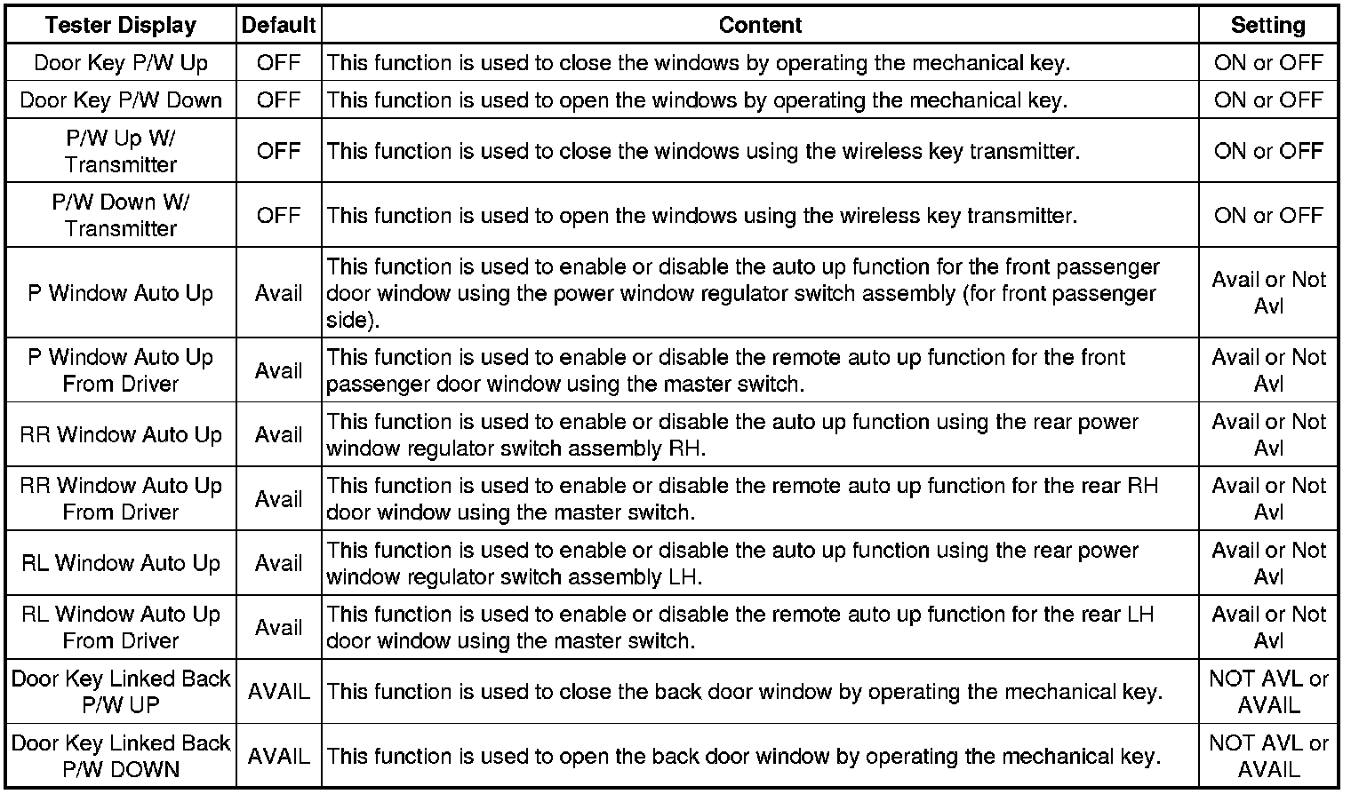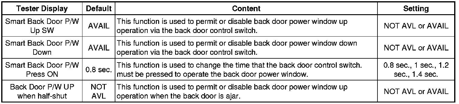 WINDOW / GLASS: POWER WINDOW CONTROL SYSTEM: CUSTOMIZE PARAMETERS