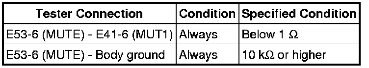 The mute signal is sent to reduce noise and popping sounds as such as those generated when switching modes. If there is an open in the circuit, noise can be heard from the speakers when changing the sound source. If there is a short in the circuit, even though the navigation receiver assembly is functioning normally, no sound or only an extremely faint sound can be heard.
