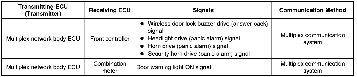 (a) The wireless door lock control system functions to lock and unlock all the doors from a distance. The system is controlled by an intelligent transmitter which sends radio waves to the door control receiver. The multiplex network body ECU performs an ID code identification process and engages the door lock control.