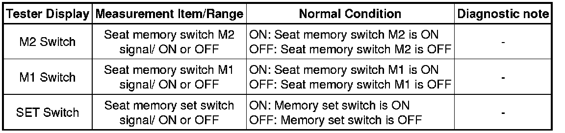 NG -- INSPECT SEAT MEMORY SWITCH