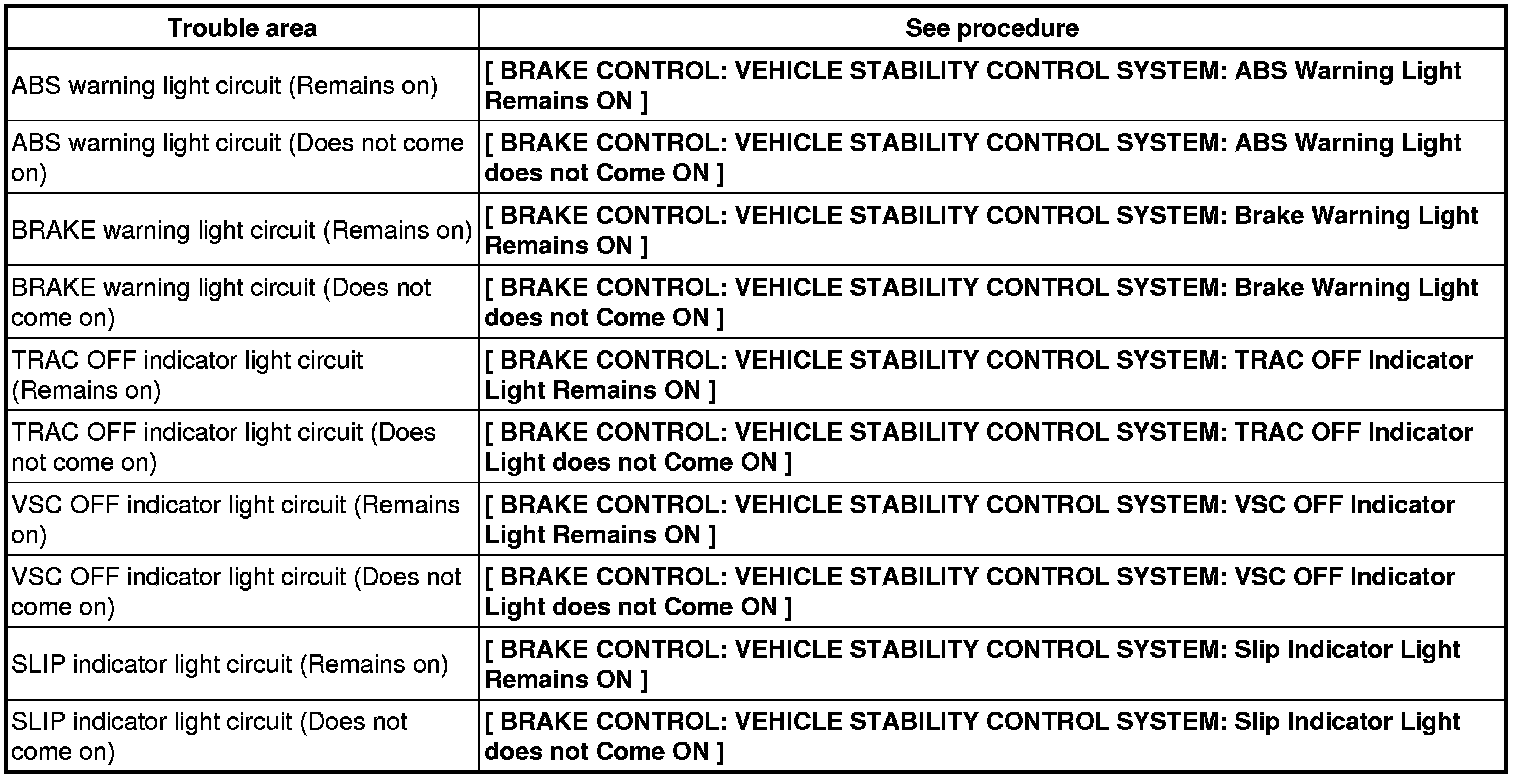 If the skid control ECU stores any DTCs, the ABS warning, BRAKE warning and SLIP indicator lights will come on.