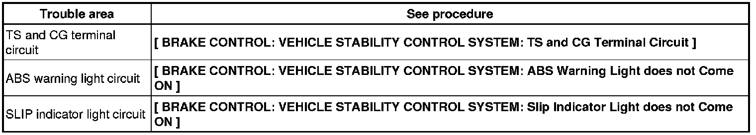 * If the ABS warning and SLIP indicator lights do not blink, inspect the TS and CG terminal circuit, and ABS warning and SLIP indicator light circuits.