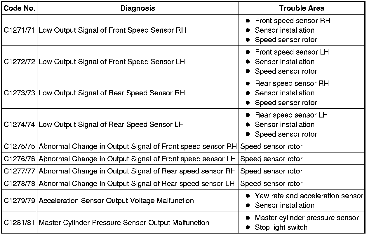 * After the ABS warning light goes off, If the vehicle speed exceeds 80 km/h (50 mph), a sensor check code will be stored again. Decelerate or stop the vehicle before the speed reaches 80 km/h (50 mph).