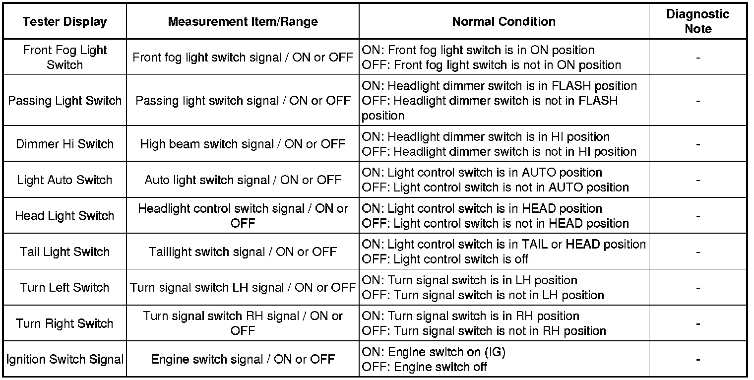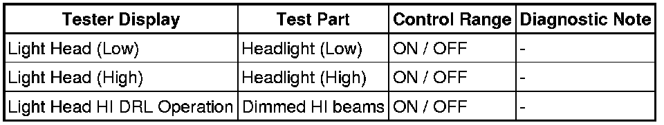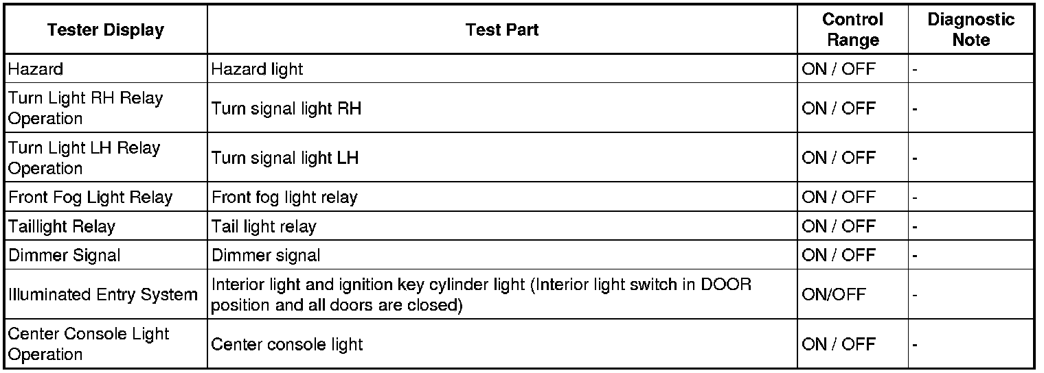 LIGHTING: LIGHTING SYSTEM: DATA LIST / ACTIVE TEST