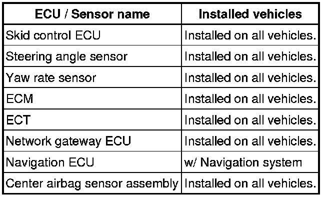(a) Systems (ECUs, sensors) that adopt CAN communication vary depending on the vehicle and optional equipment. Check which systems (ECUs, sensors) are installed on the vehicle.