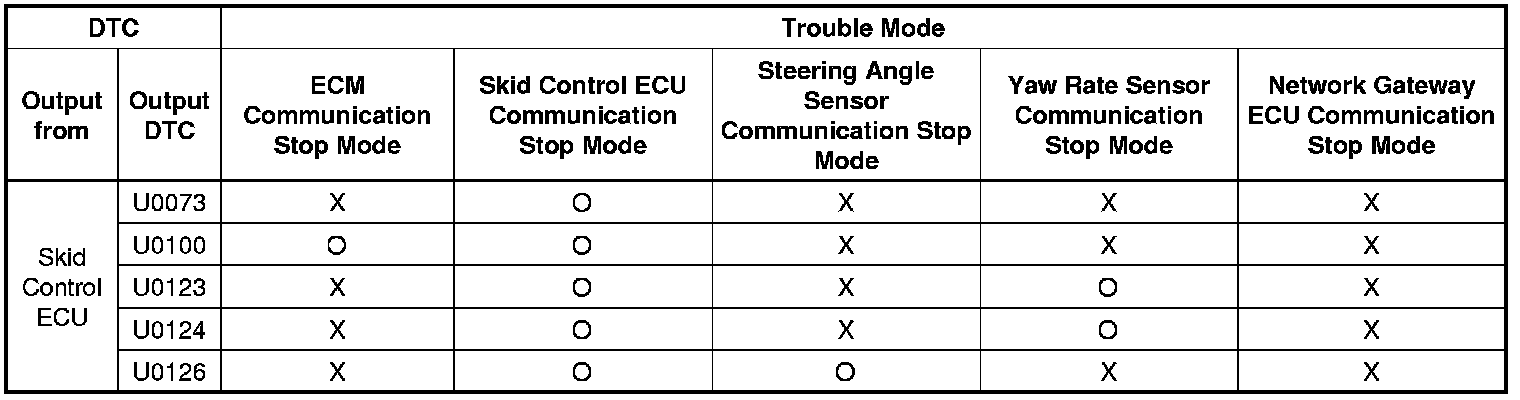 * X: Not set or may be set according to the malfunctioning part when one side of the CAN bus is open