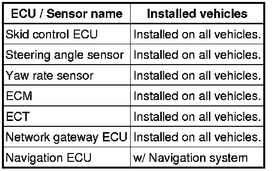 (a) Systems (ECUs, sensors) that adopt CAN communication vary depending on the vehicle and optional equipment. Check which systems (ECUs, sensors) are installed on the vehicle.