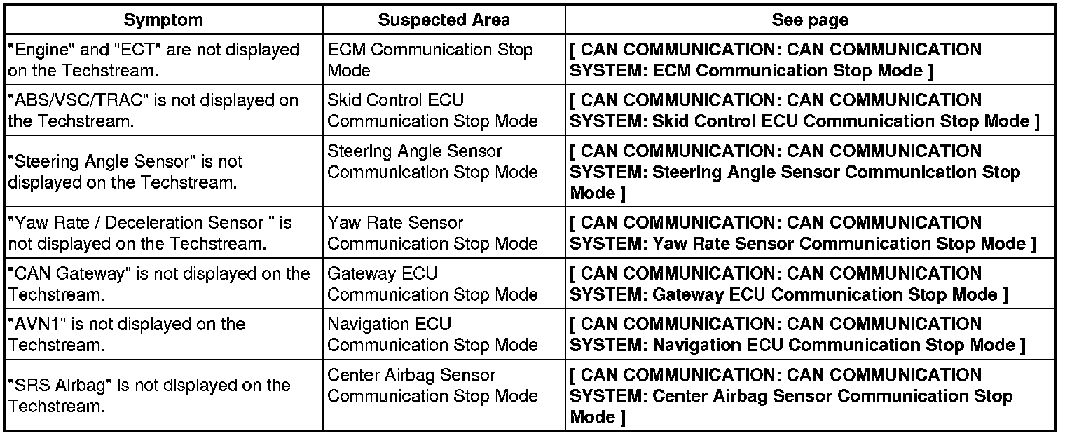 CAN COMMUNICATION: CAN COMMUNICATION SYSTEM: PROBLEM SYMPTOMS TABLE