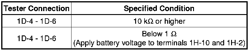 If the result is not as specified, replace the engine room junction block assembly.