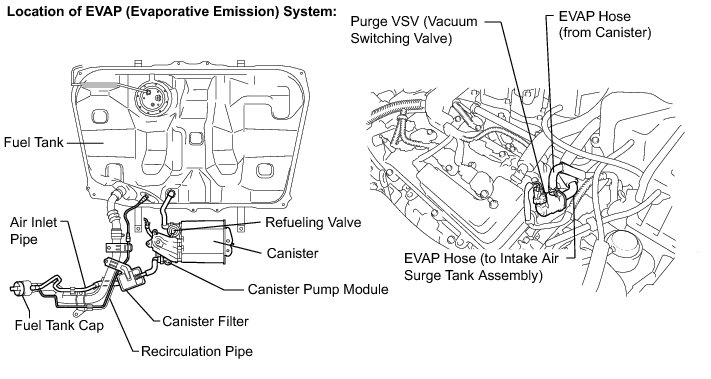 B -- CHECK EVAP HOSE (PURGE VSV - INTAKE AIR SURGE TANK ASSEMBLY)