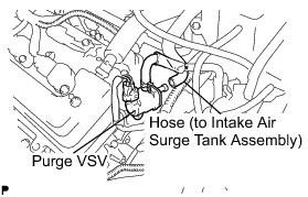 (a) Disconnect the hose (connected to the intake air surge tank assembly) from the purge VSV.