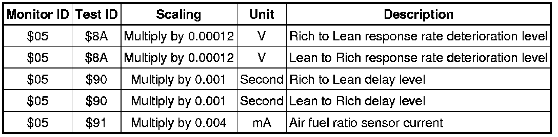 If you use a generic scan tool, multiply the test value by the scaling value listed below.
