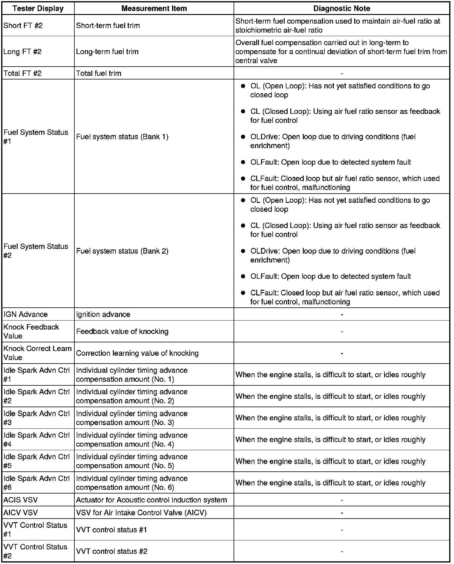 2GR-FE ENGINE CONTROL SYSTEM: SFI SYSTEM: FREEZE FRAME DATA