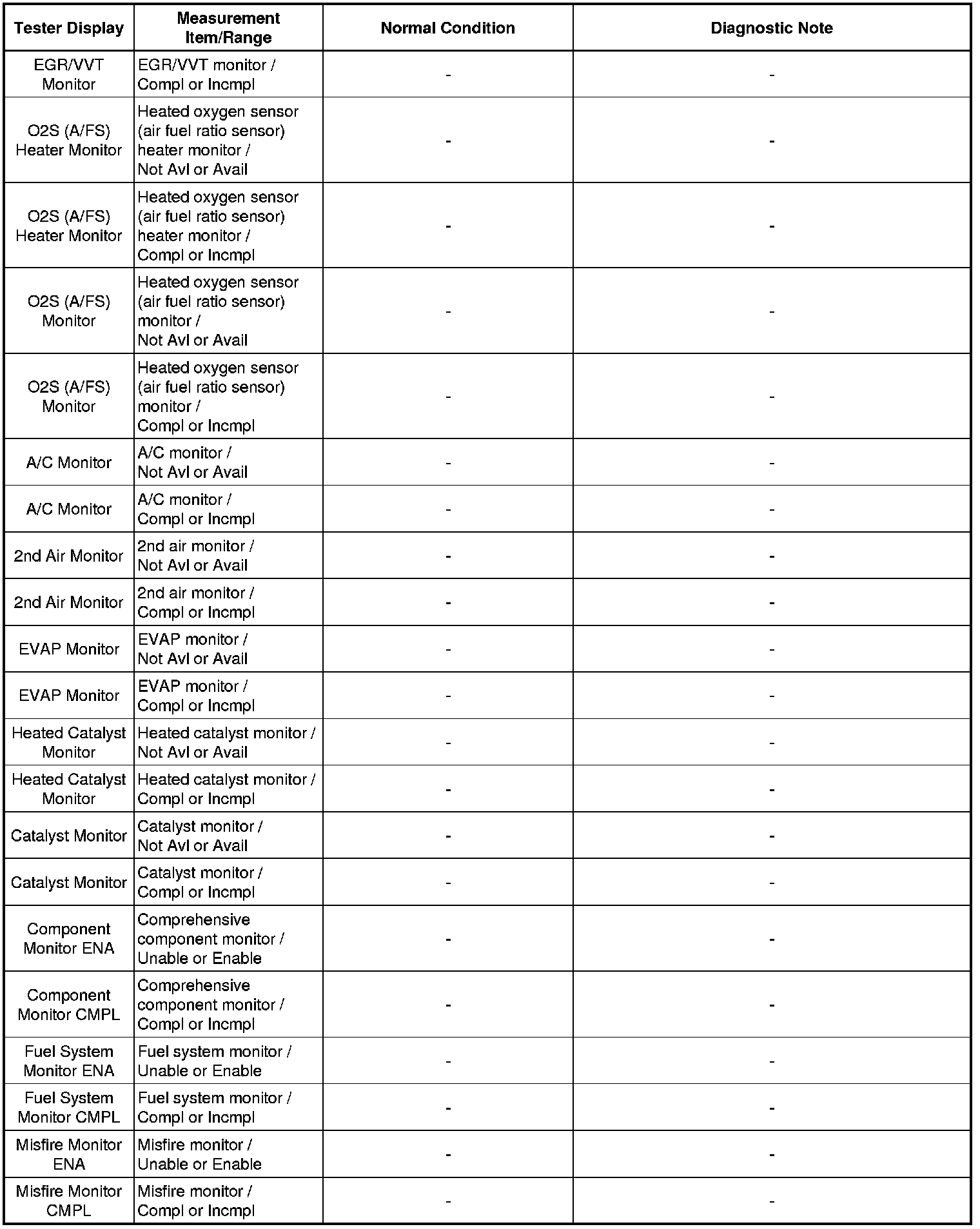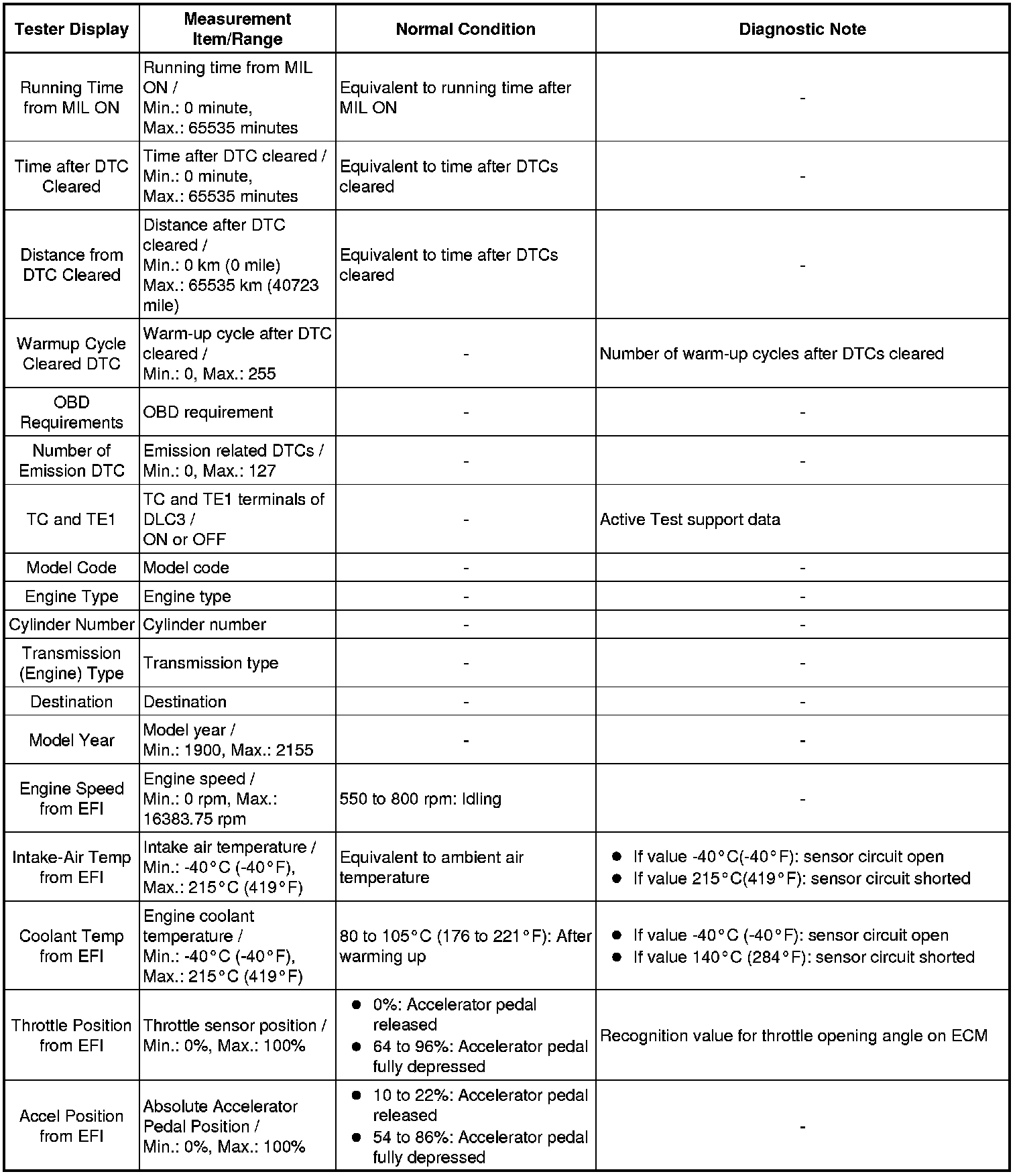 In the table below, the values listed under "Normal Condition" are reference values. Do not depend solely on these reference values when deciding whether a part is faulty.