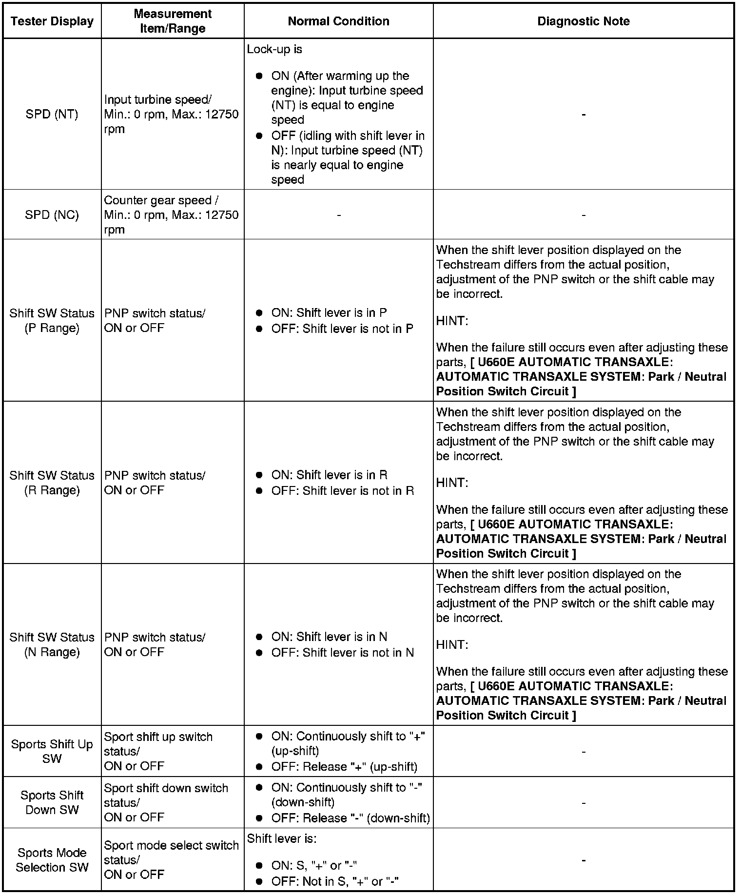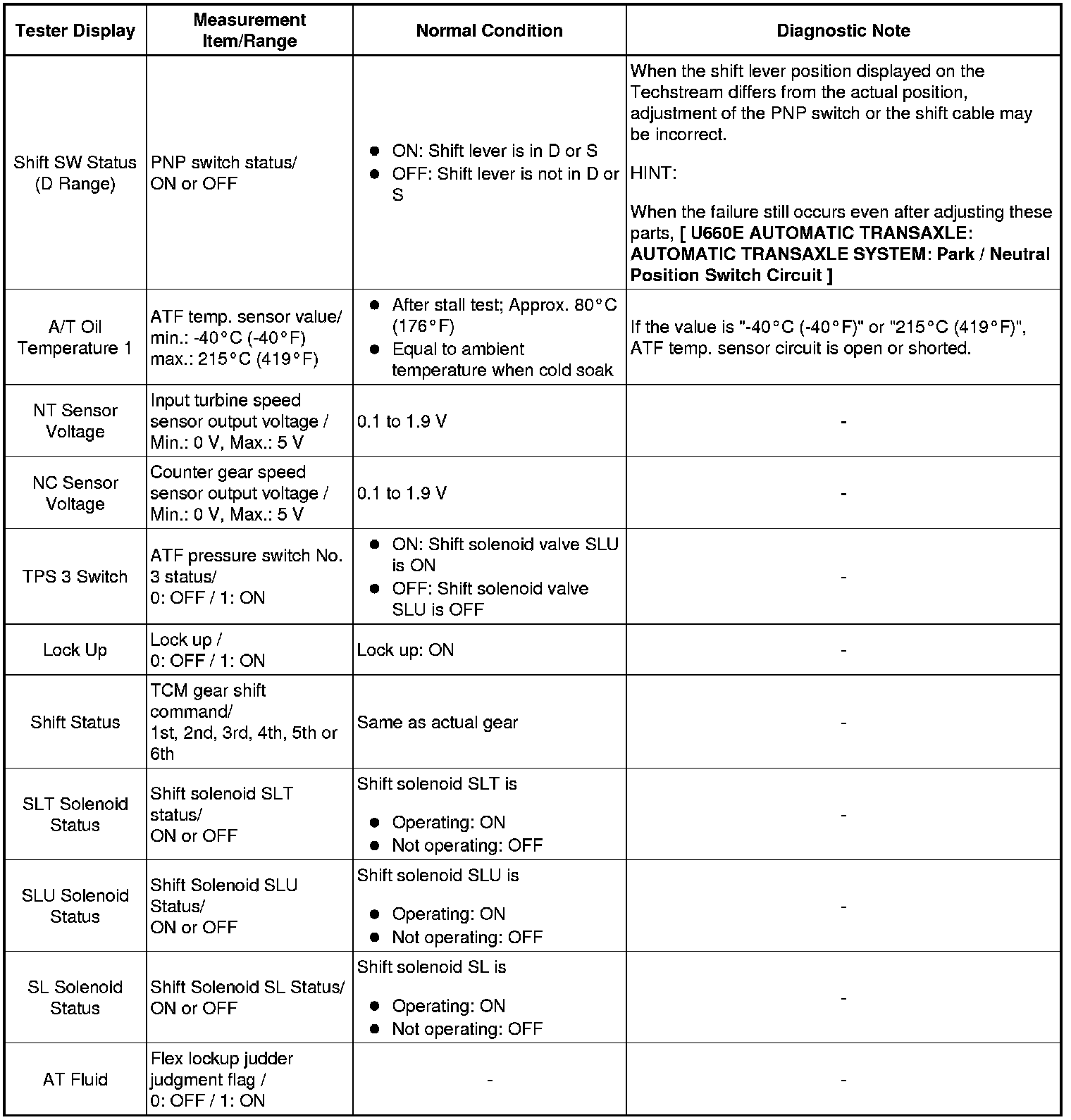 U660E AUTOMATIC TRANSAXLE: AUTOMATIC TRANSAXLE SYSTEM: DATA LIST / ACTIVE TEST