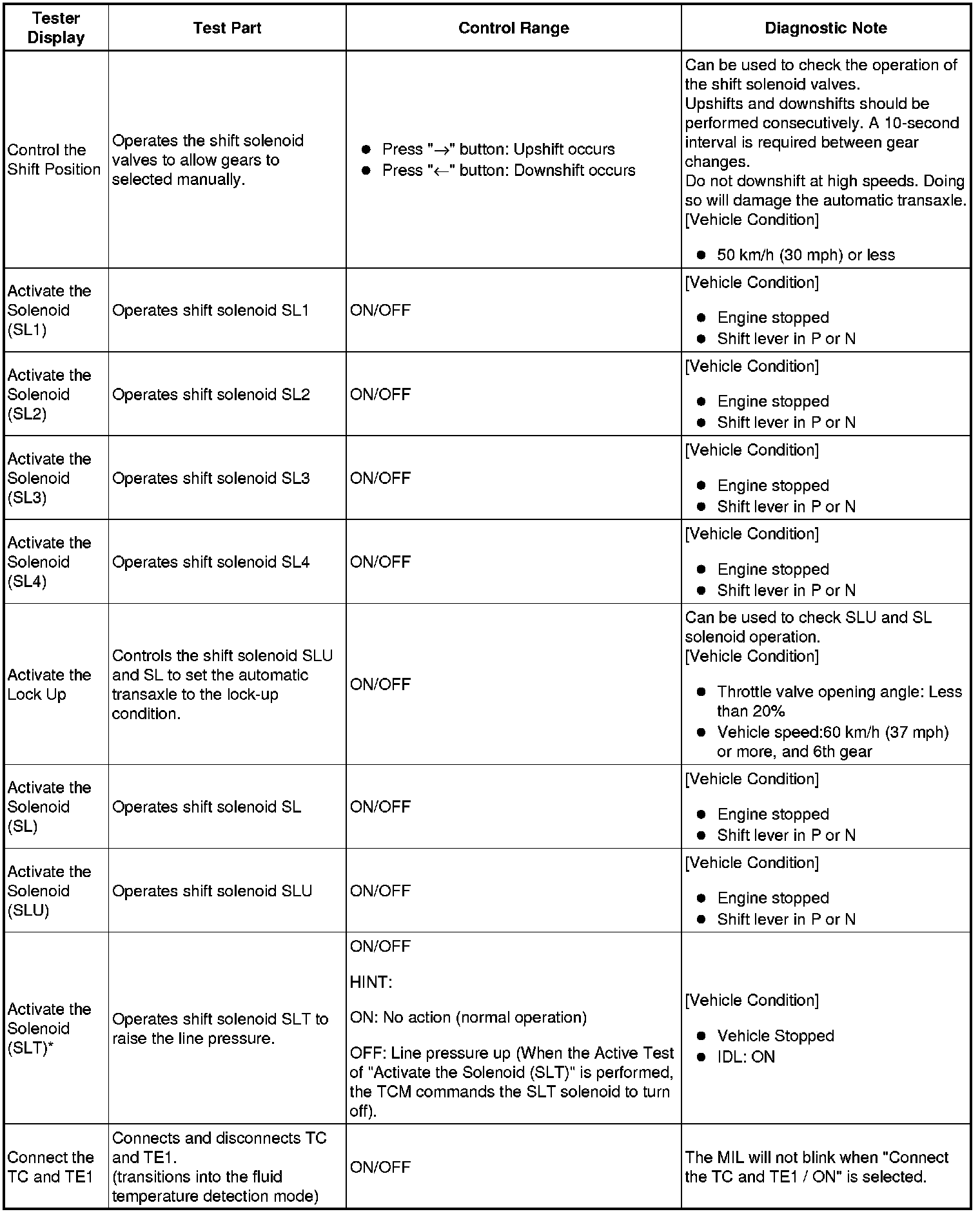 *: "Activate the Solenoid (SLT)" in the Active Test is performed to check the line pressure changes by connecting the SST to the automatic transaxle. The same SST is used for the HYDRAULIC TEST Hydraulic Test as well.