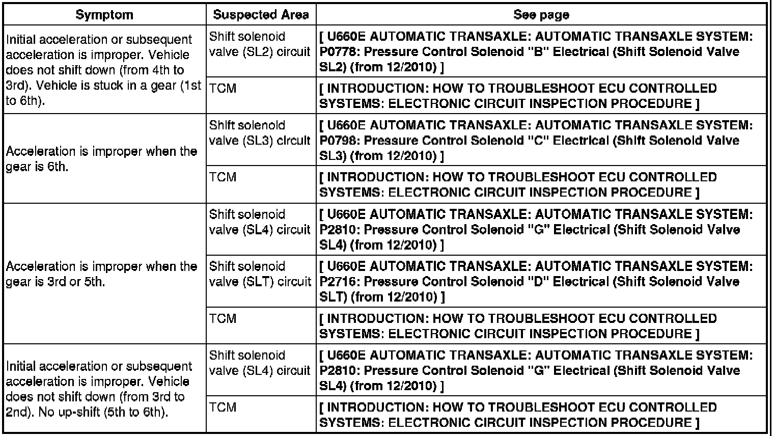 U660E AUTOMATIC TRANSAXLE: AUTOMATIC TRANSAXLE SYSTEM: PROBLEM SYMPTOMS TABLE