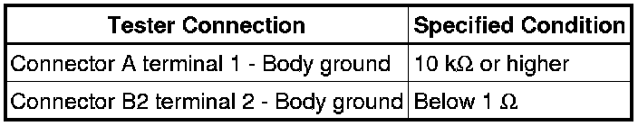 * If the results match the examples above, a short circuit exists between terminal 1 of connector B2 and terminal 1 of connector C.