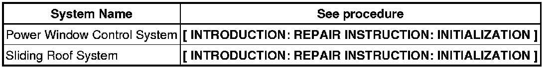 When disconnecting the battery cable from the negative (-) battery terminal, initialize the following systems after the cable is reconnected.