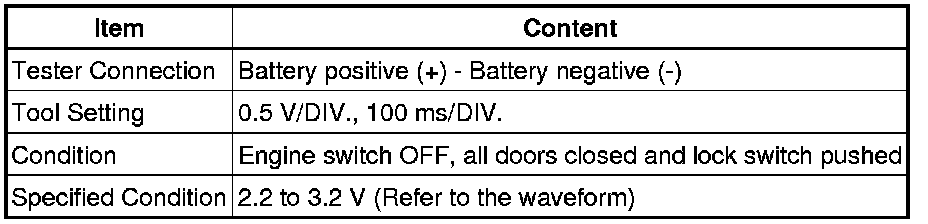 When measuring the battery voltage, while operating the lock switch of a door handle, bring the electrical key transmitter within the entry operating range to perform the measurement. For the entry operating range, refer to SYSTEM DESCRIPTION Door Lock - Smart Key System.
