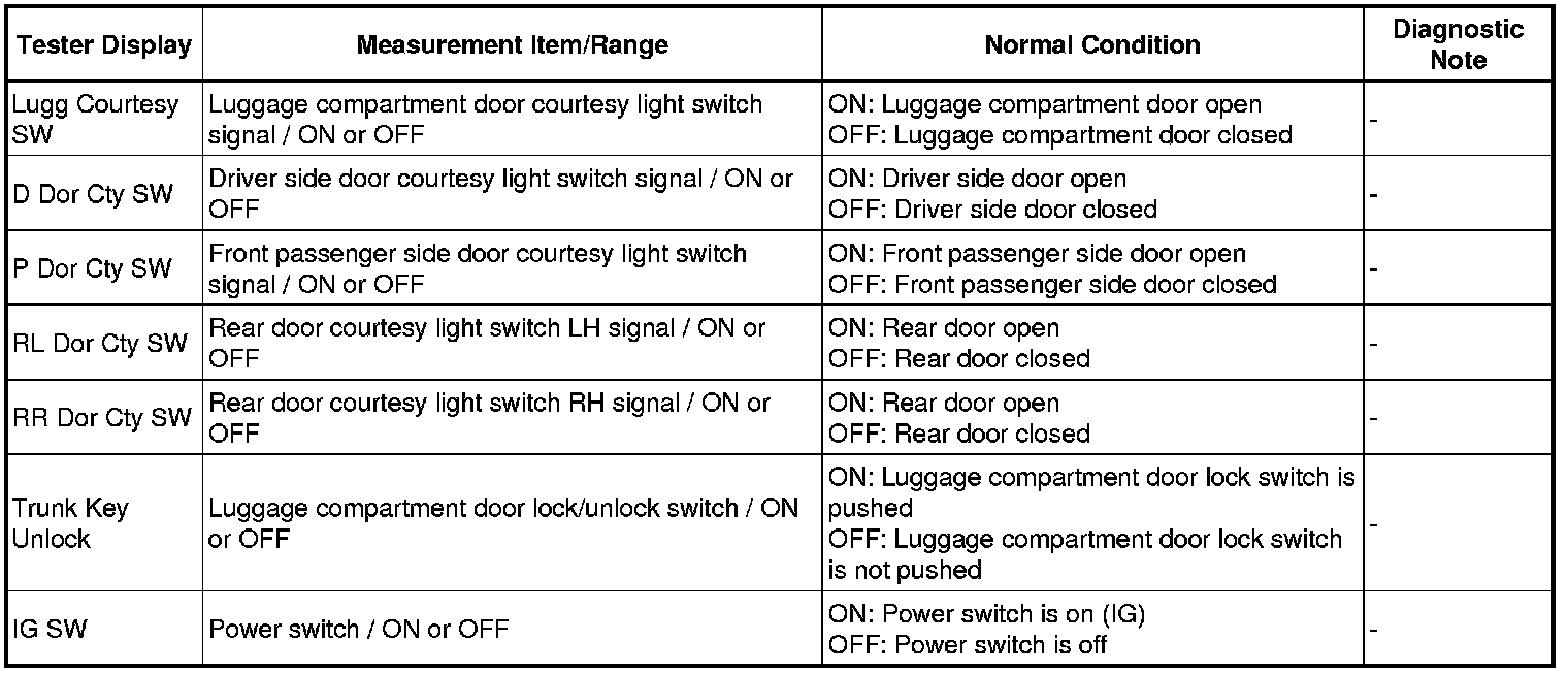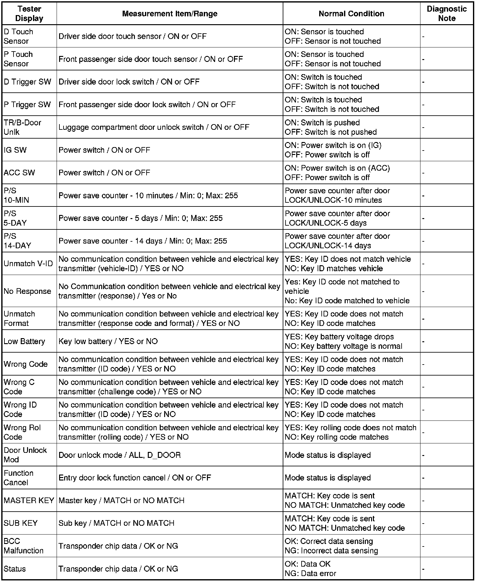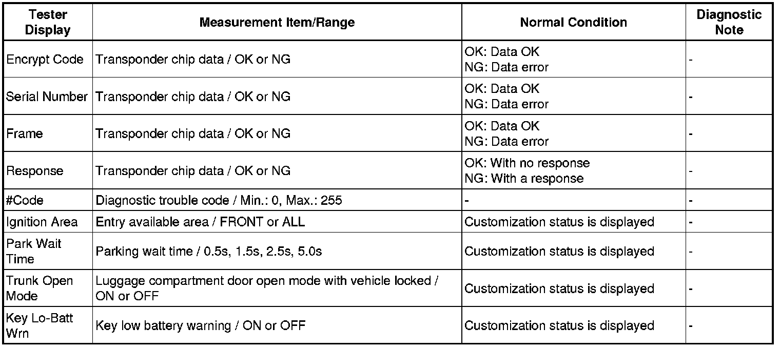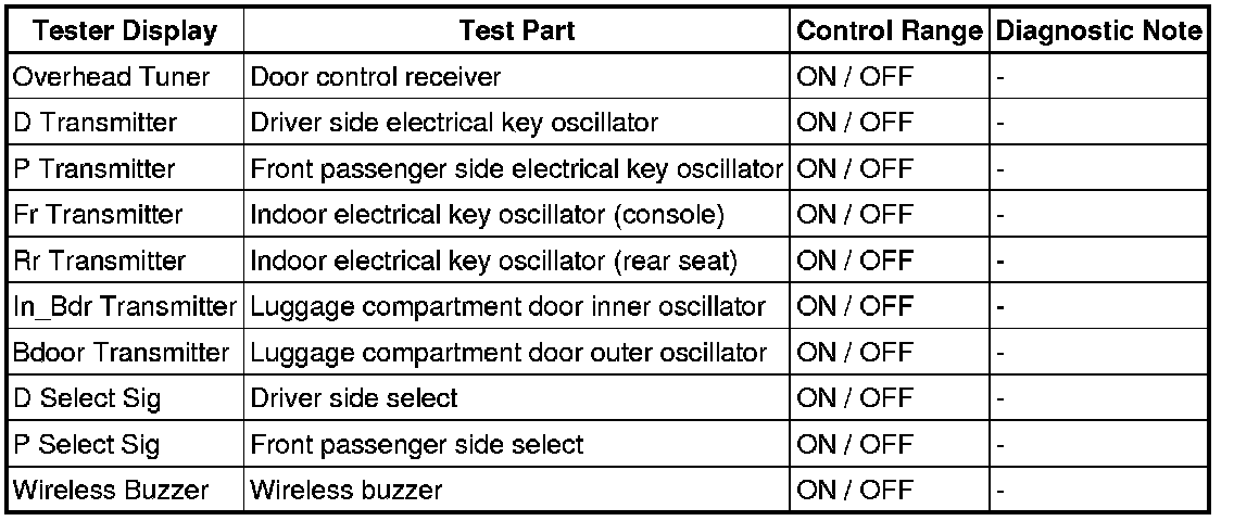 DOOR LOCK: SMART KEY SYSTEM: DATA LIST / ACTIVE TEST