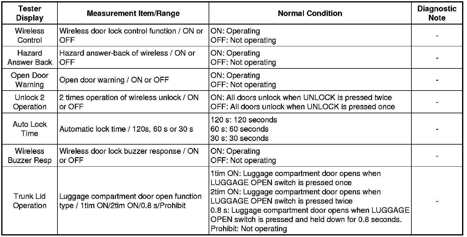 DOOR LOCK: WIRELESS DOOR LOCK CONTROL SYSTEM: DATA LIST / ACTIVE TEST