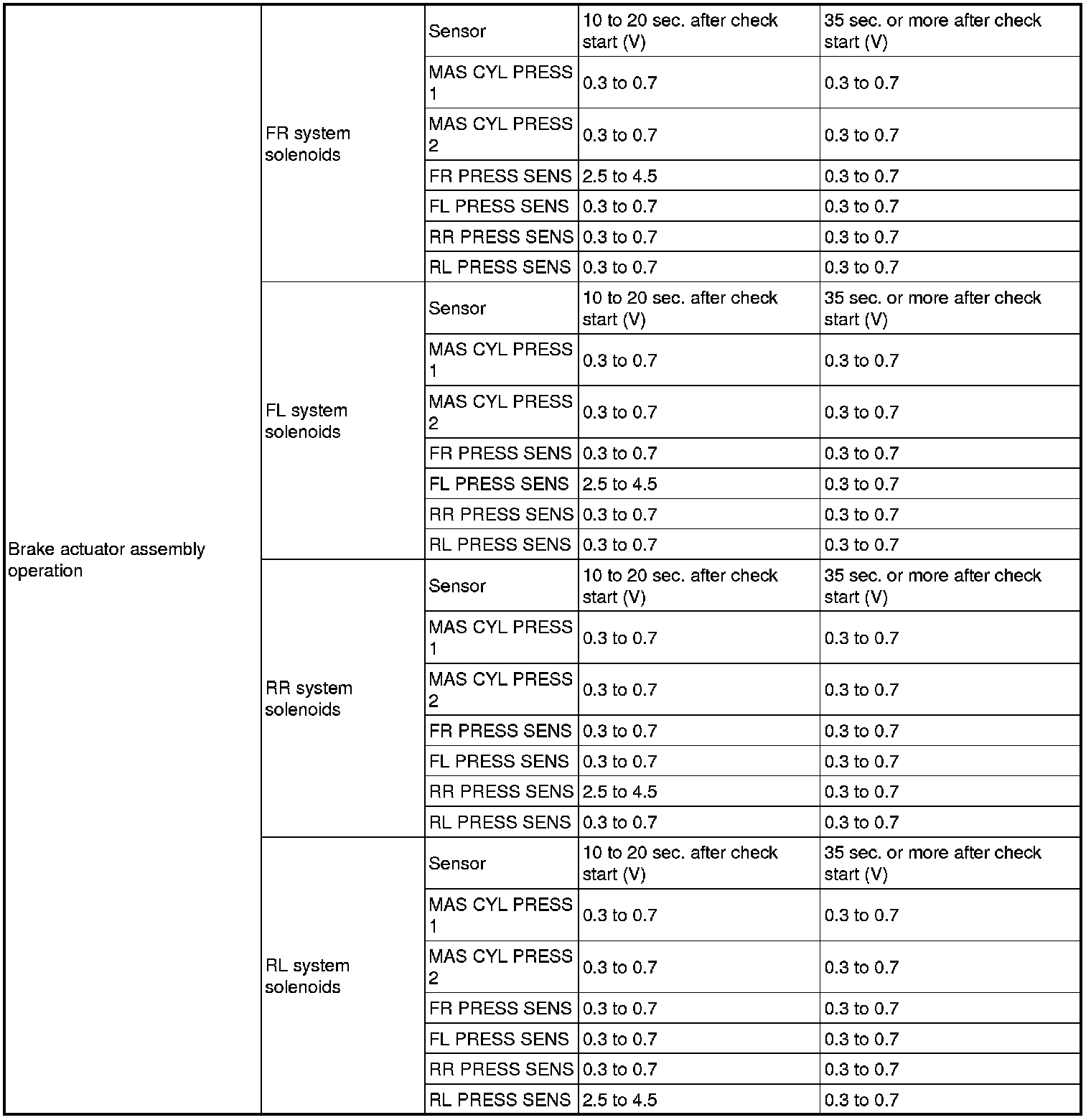 SERVICE SPECIFICATIONS: BRAKE CONTROL: SERVICE DATA