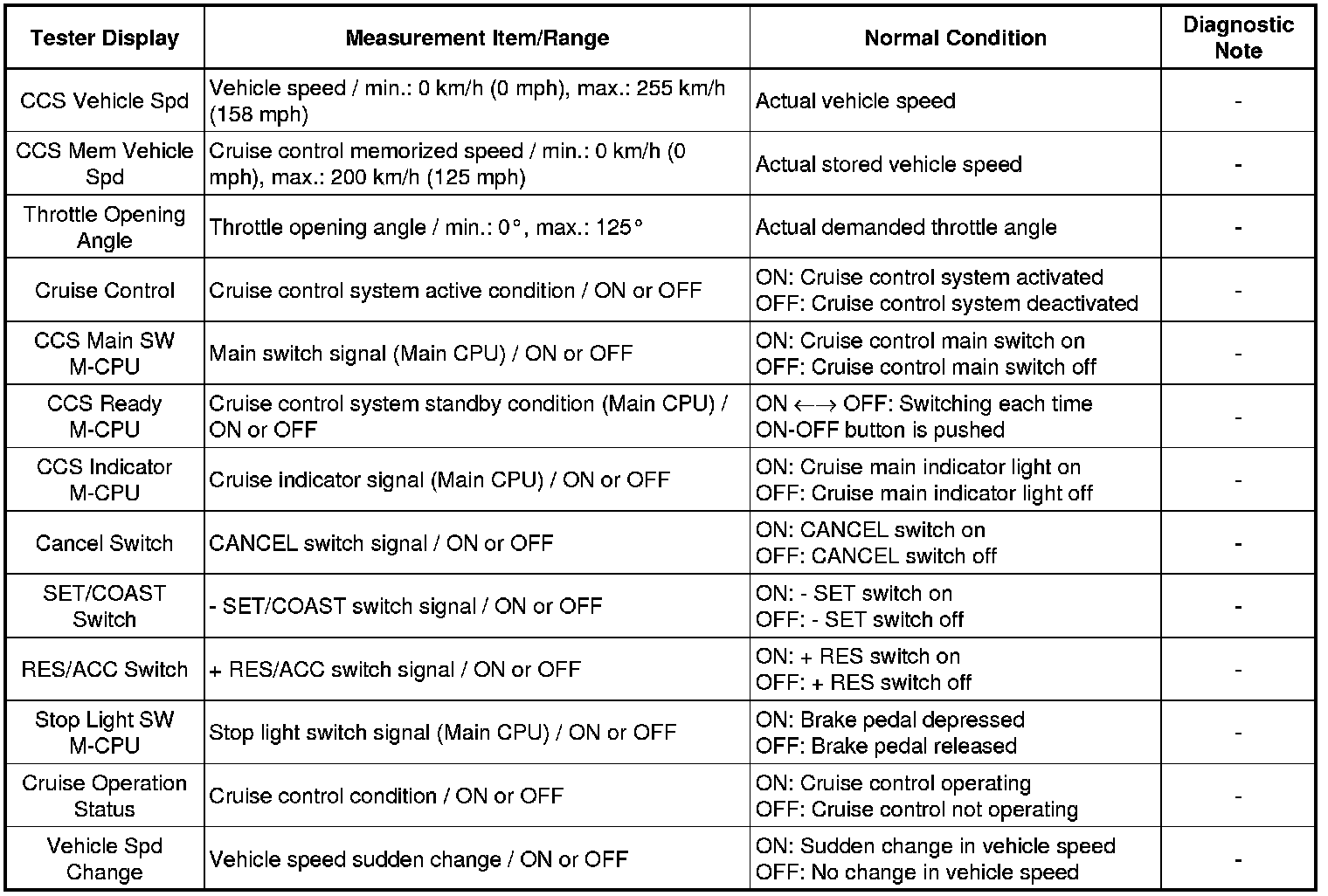 CRUISE CONTROL: CRUISE CONTROL SYSTEM: DATA LIST / ACTIVE TEST