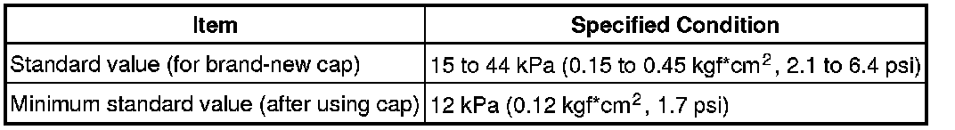 (c) Pump the radiator cap tester to 37 kPa (0.38 kgf/cm2, 5.4 psi), and then check that the pressure does not drop.