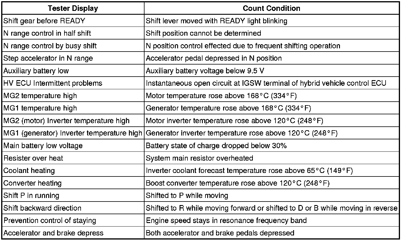 P311 HYBRID VEHICLE CONTROL: HYBRID CONTROL SYSTEM: OPERATION HISTORY DATA