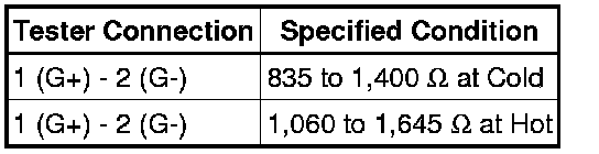If the result is not as specified, replace the camshaft position sensor.