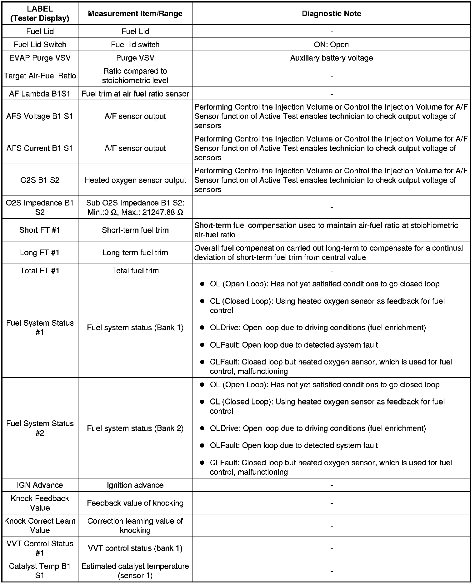 2. LIST OF FREEZE FRAME DATA
