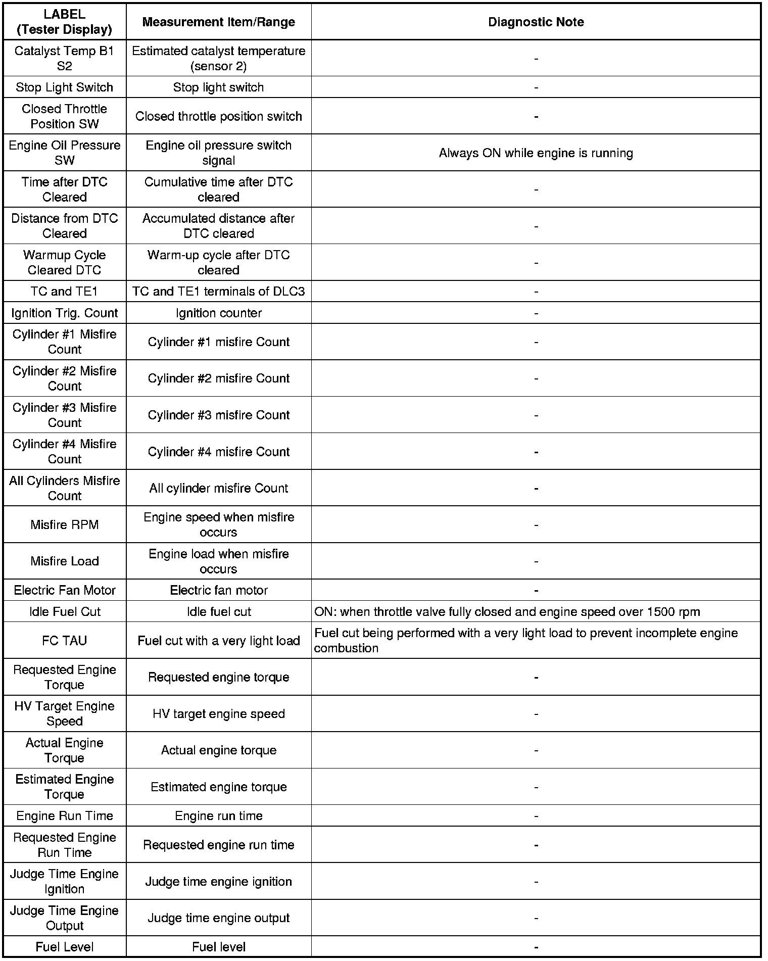 * The ECM (included in the hybrid vehicle control ECU) records vehicle and driving condition information as freeze frame data the moment a DTC is stored. When troubleshooting, freeze frame data can be helpful in determining whether the vehicle was running or stopped, whether the engine was warmed up or not, whether the air/fuel ratio was lean or rich, as well as other data recorded at the time of a malfunction.