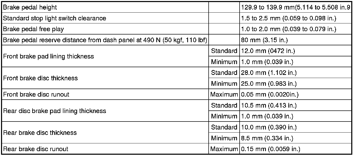 SERVICE SPECIFICATIONS: BRAKE: SERVICE DATA