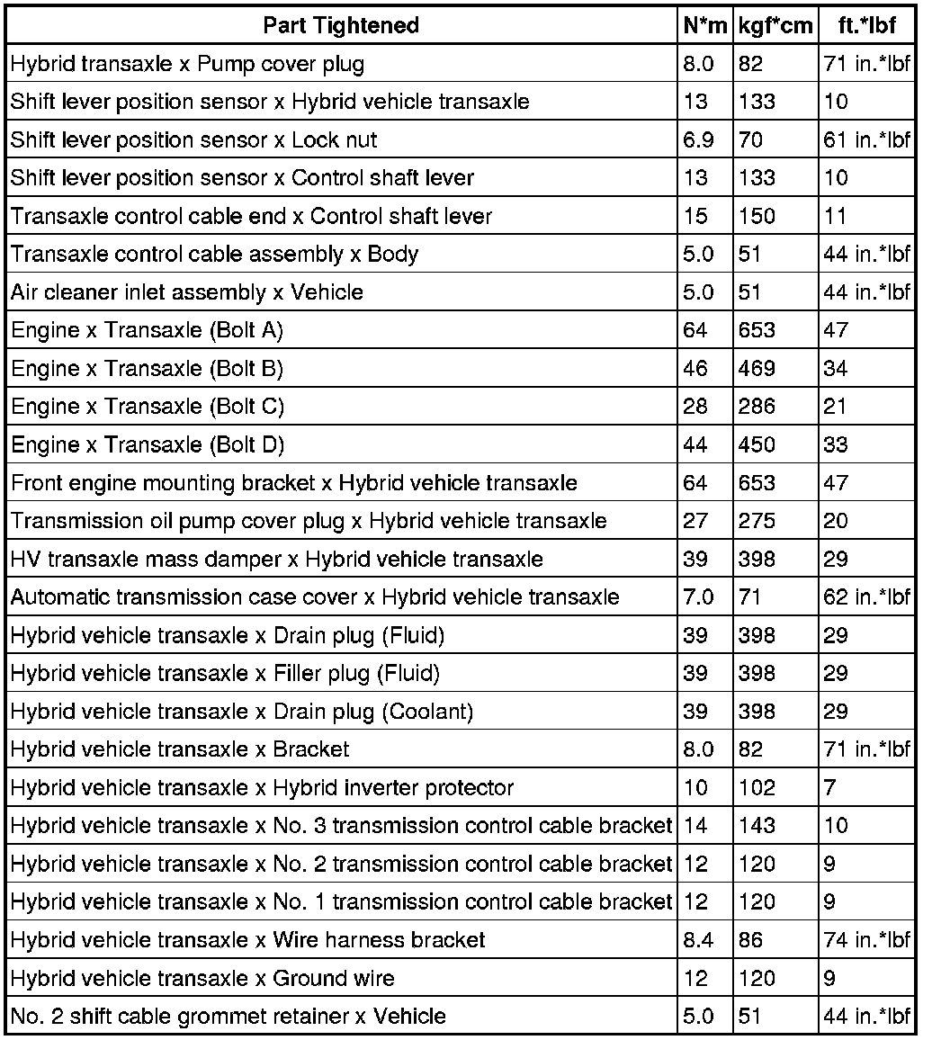 SERVICE SPECIFICATIONS: P311 HYBRID TRANSMISSION / TRANSAXLE: TORQUE SPECIFICATIONS