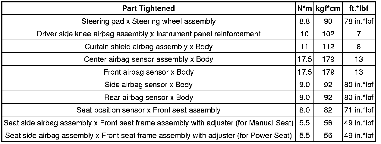 SERVICE SPECIFICATIONS: SUPPLEMENTAL RESTRAINT SYSTEM: TORQUE SPECIFICATIONS