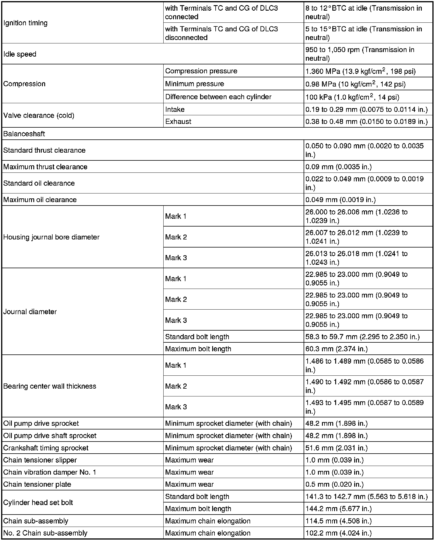 SERVICE SPECIFICATIONS: 2AZ-FXE ENGINE MECHANICAL: SERVICE DATA