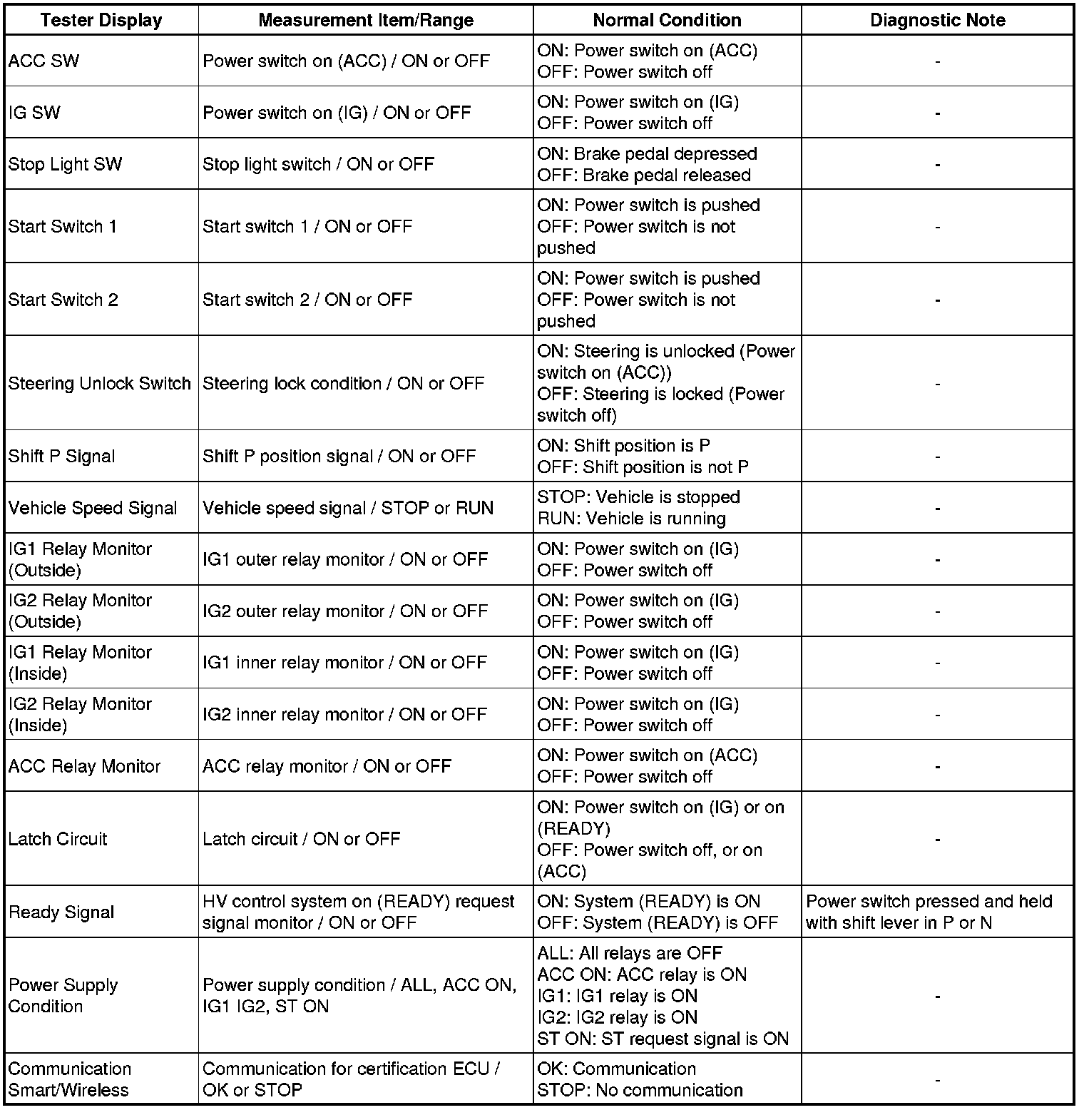 Using Techstream to read the Data List allows the values or states of switches, sensors, actuators and other items to be read without removing any parts. This non-intrusive inspection can be very useful as intermittent conditions or signals may be discovered before parts or wiring is disturbed. Reading the DATA LIST information early in troubleshooting is one way to save diagnostic time.