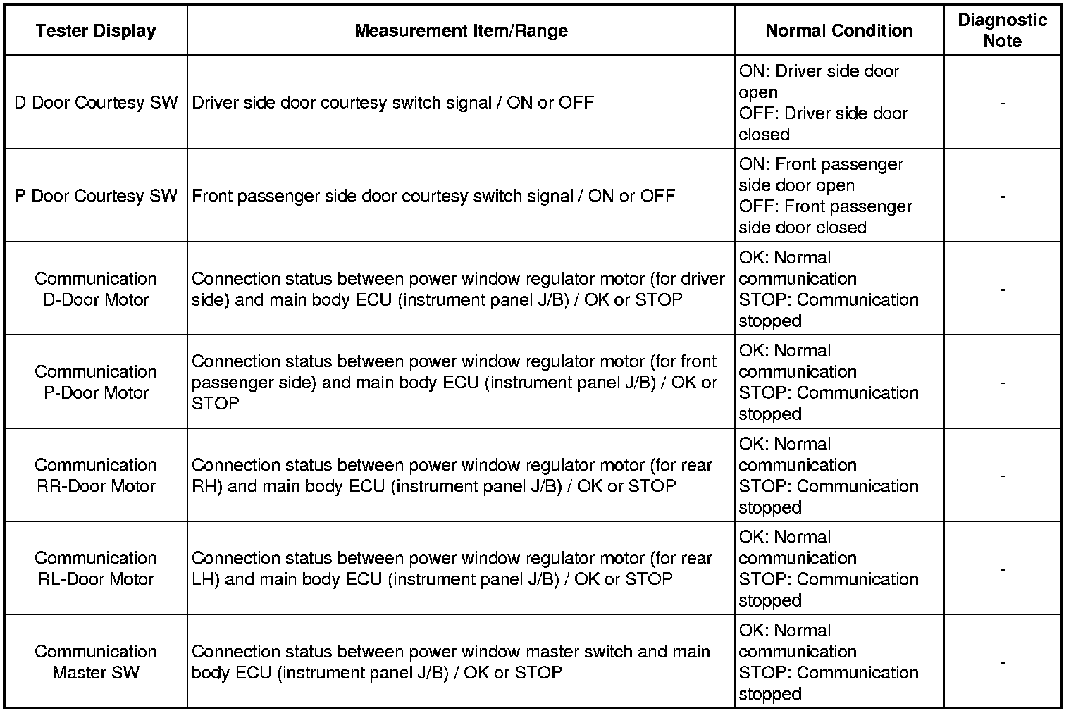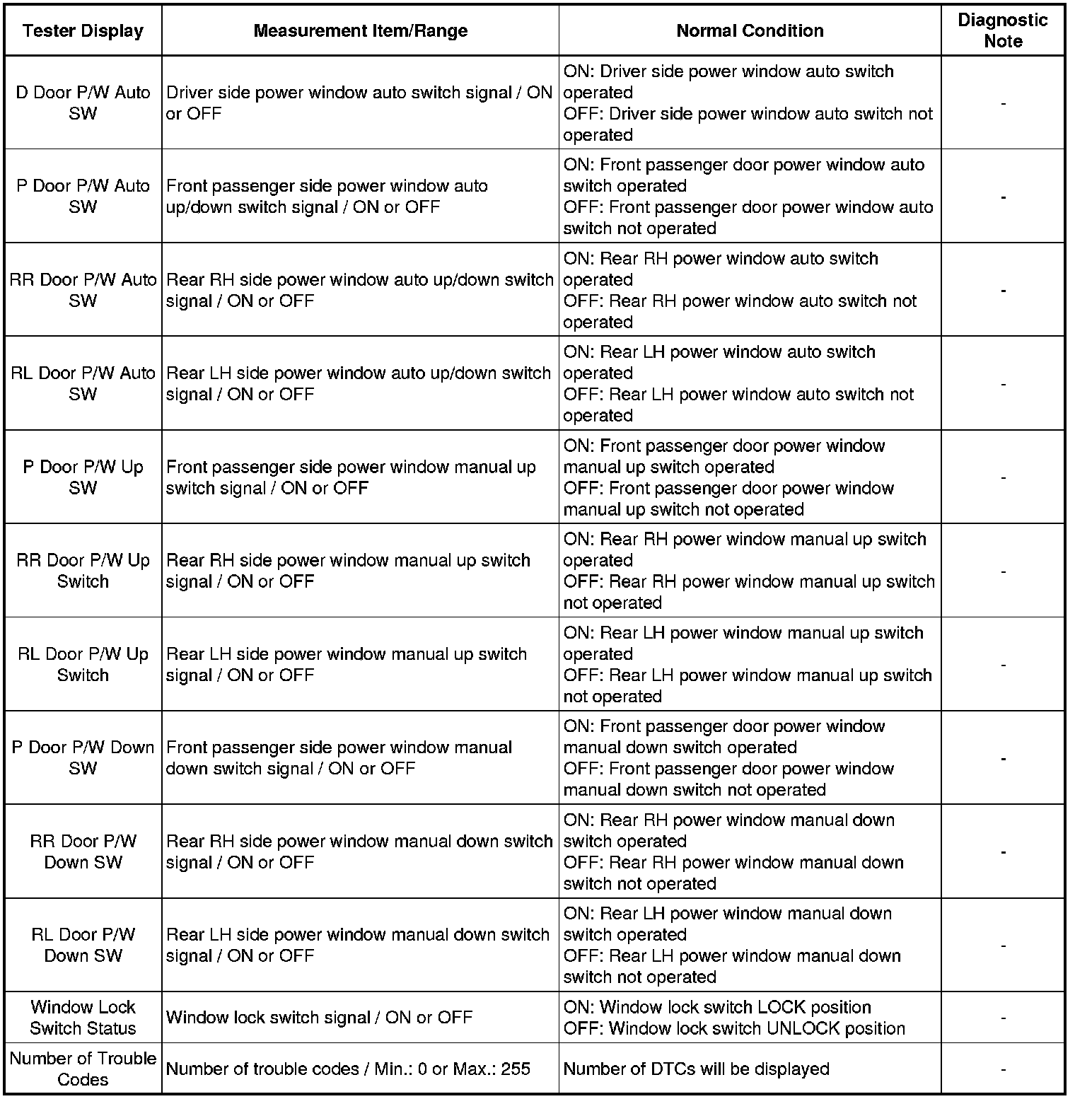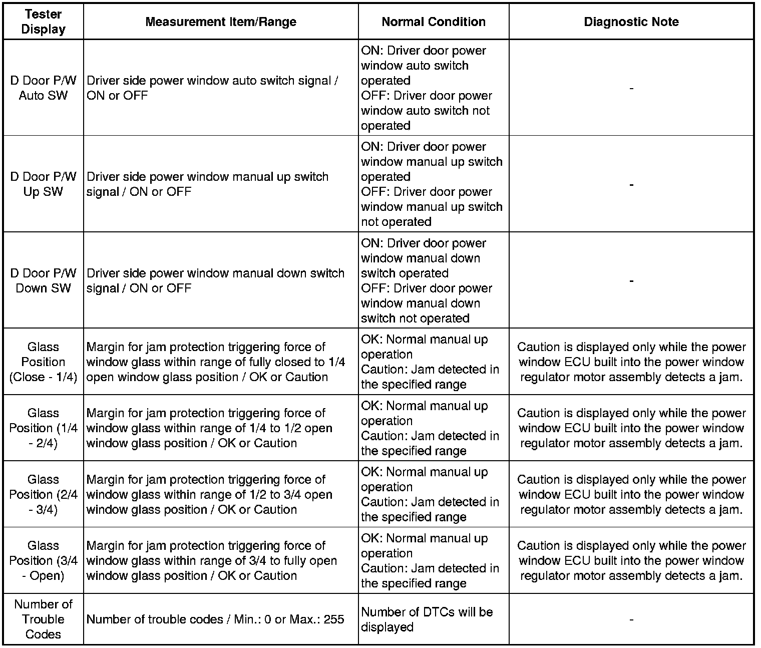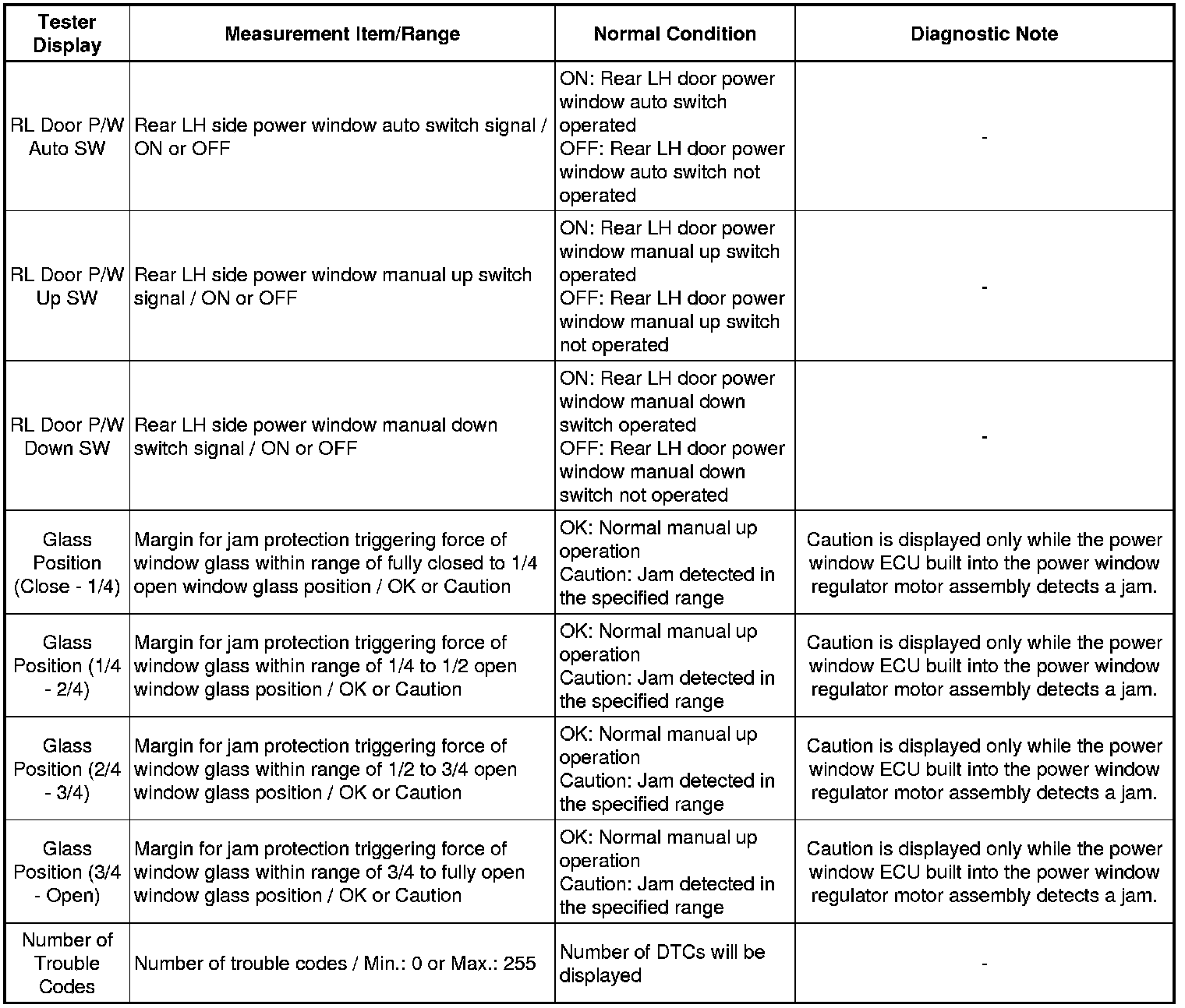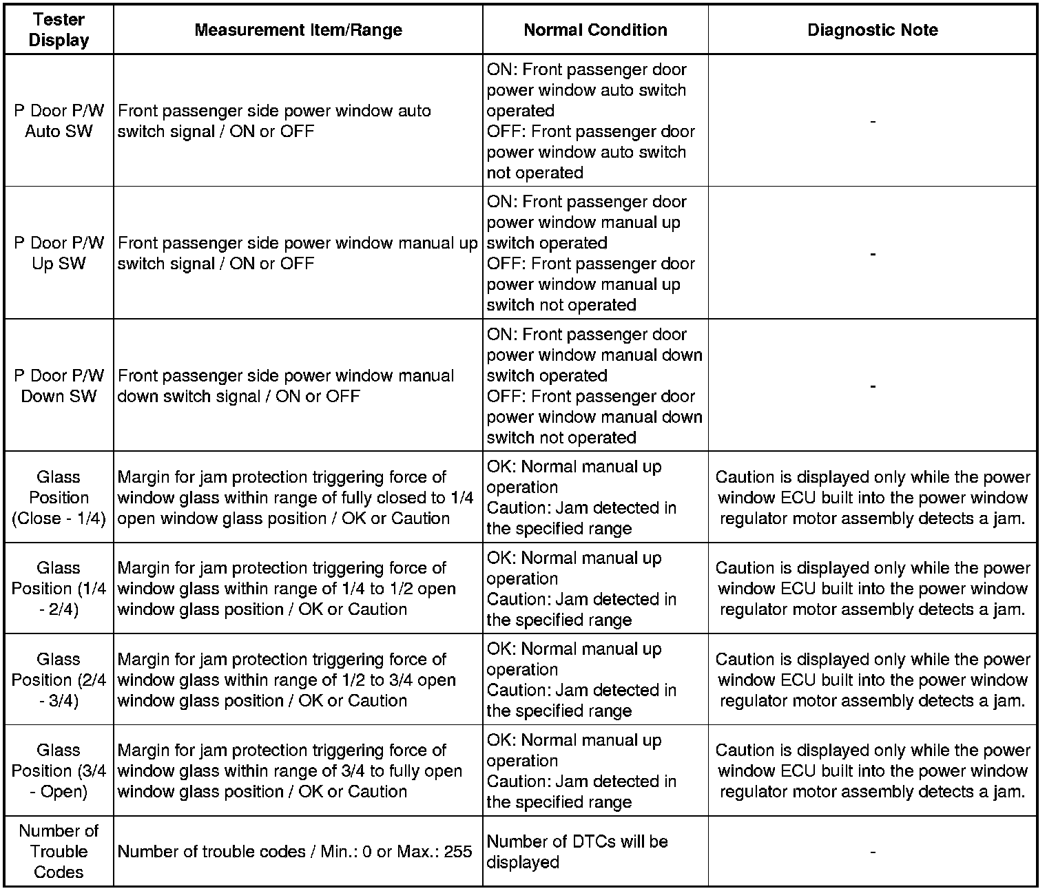 WINDSHIELD / WINDOW GLASS: POWER WINDOW CONTROL SYSTEM: DATA LIST / ACTIVE TEST